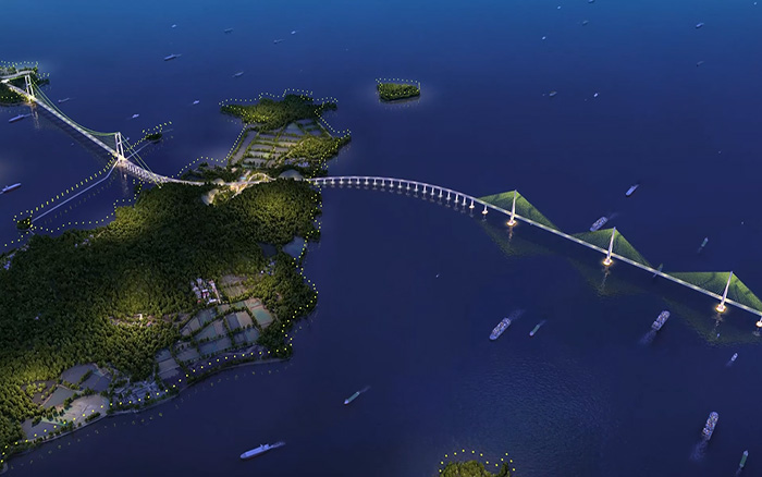 東海之濱,長虹臥波。大橋建成后,將直接改善舟山南翼群島的對外交通條件,對優(yōu)化舟山群島新區(qū)空間布局、打造現(xiàn)代海洋產(chǎn)業(yè)基地具有關(guān)鍵作用。