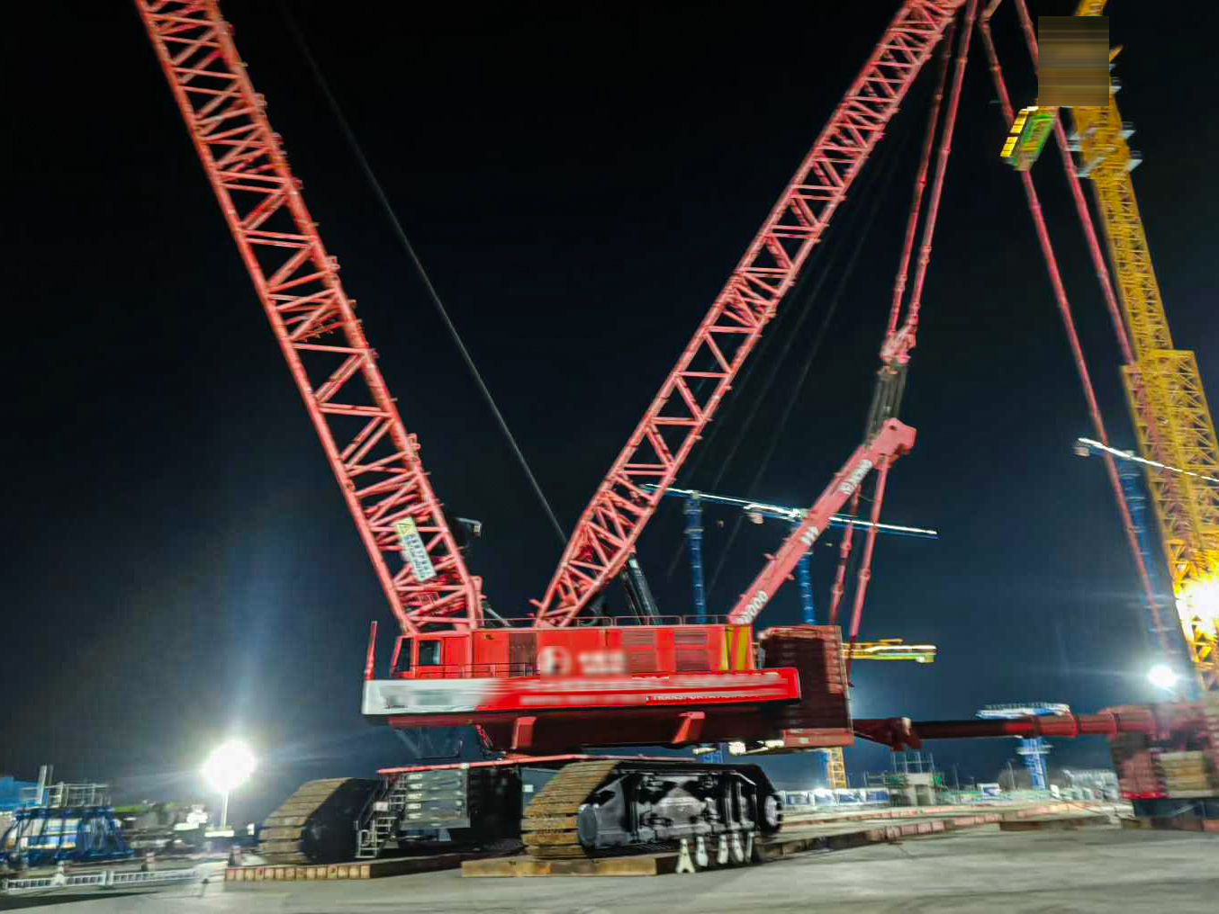 施工現(xiàn)場,XGC28000采用108米重型主臂,穩(wěn)而有序地執(zhí)行提升、旋轉(zhuǎn)、帶載行走等一系列高難度動作。