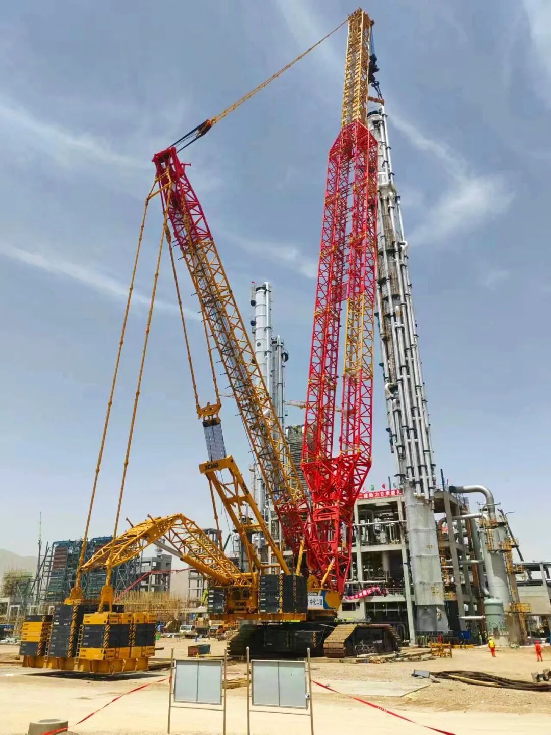 2022年3月,XLC30000首次出口國際市場,在孟加拉最大綠色肥料廠建設中,將高68.5米、重603噸的二氧化碳汽提塔吊裝就位。