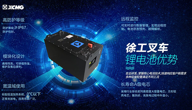 徐工叉車掌握核心電池技術(shù),鯤鵬電動(dòng)叉車搭載自主研發(fā)的鋰電池,電池模塊歷經(jīng)20余項(xiàng)極限安全試驗(yàn),可在高、低溫環(huán)境正常作業(yè);大容量電池配合隨充隨用的鋰電池快充特性,使得鯤鵬電動(dòng)叉車擁有超長(zhǎng)續(xù)航能力。