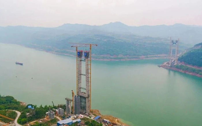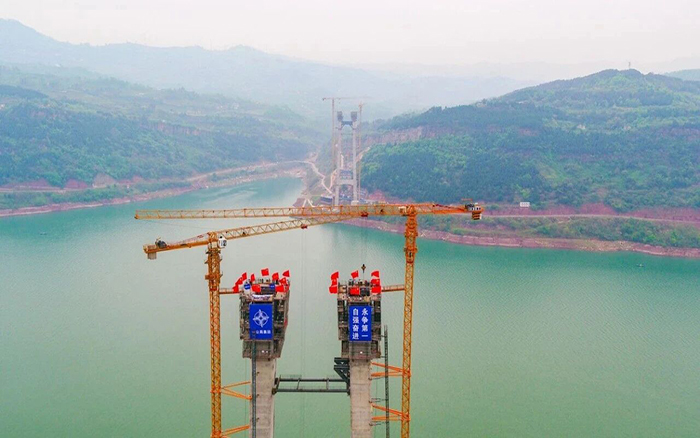 作為國(guó)內(nèi)山區(qū)首座PPP模式下實(shí)施全生命周期BIM+技術(shù)的千米級(jí)特大橋,高度為177.5米的鋼筋混凝土主塔,相當(dāng)于60層樓的高度,矗立于長(zhǎng)江兩側(cè)。晴雨莫測(cè)、地勢(shì)復(fù)雜、施工高度高、晝夜施工不間斷作業(yè)……一系列復(fù)雜的施工條件,其施工難度不言而喻,對(duì)于塔機(jī)的各項(xiàng)性能都是極大的考驗(yàn)。