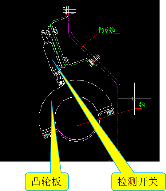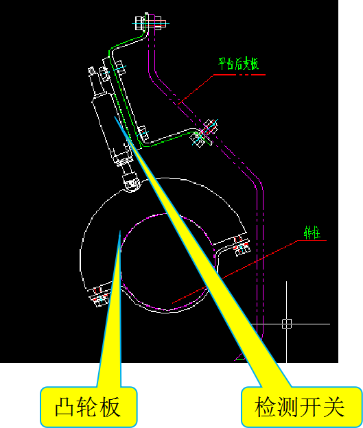 (3)安裝位置:安裝在平臺(tái)轉(zhuǎn)柱中間,開關(guān)圍繞凸輪板旋轉(zhuǎn)。
