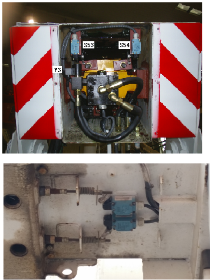 (1)檢測(cè)形式:采用行程開關(guān)檢測(cè)裝在伸縮鏈拉桿上的檢測(cè)板,一旦伸縮鏈松斷,會(huì)釋放開關(guān)搖桿,然后報(bào)警并限制臂架伸縮動(dòng)作。