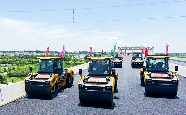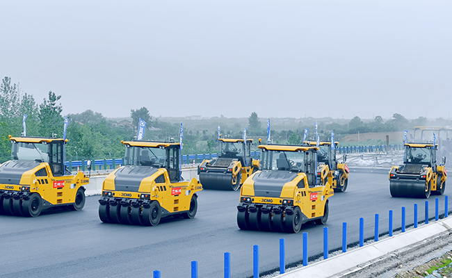 主力設(shè)備:徐工XD135T憑借雙泵雙馬達振動液壓系統(tǒng)杜絕拍振,67Hz高效壓實技術(shù)搭配電比例行走控制,大幅提升作業(yè)效率;”軟起軟停“技術(shù),避免路面堆料、擁包,確保路面平整性。