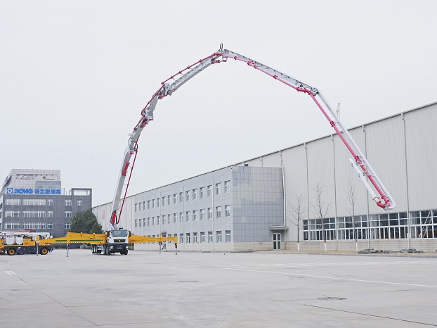 除了高層建筑,像大型風電、體育場館、機場航站樓這些施工,混凝土澆筑點離泵車站位點往往很遠,需要頻繁挪車。徐工75米泵車正負360°趴平,覆蓋面積足足兩個足球場大。