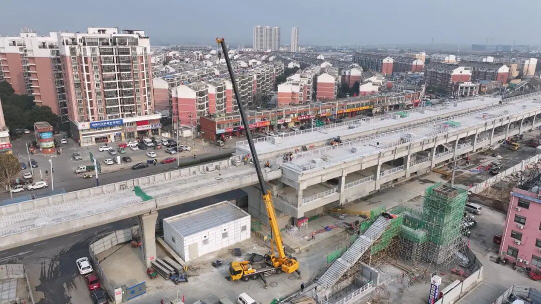 當隧道穿出地面,舞臺也從地底升至高空。合肥軌道交通S1號線高架段,徐工XCT50G5-1伸展40米主臂,將25米長、單重1.5噸的軌道板吊起,精準送上橋基。