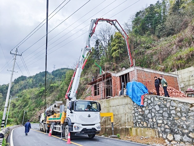近日,湖南婁底新化縣一處民房建設(shè)現(xiàn)場,一臺(tái)徐工HB33V燃油泵車格外引人注目。當(dāng)天需澆筑18方C30混凝土,面對(duì)鄉(xiāng)鎮(zhèn)民房場地狹窄、道路崎嶇的難題,HB33V憑借占地面積小、臂架靈活的優(yōu)勢輕松進(jìn)場,33米臂架在有限空間內(nèi)伸展自如,精準(zhǔn)布料,不到半天便高效完成澆筑任務(wù)。