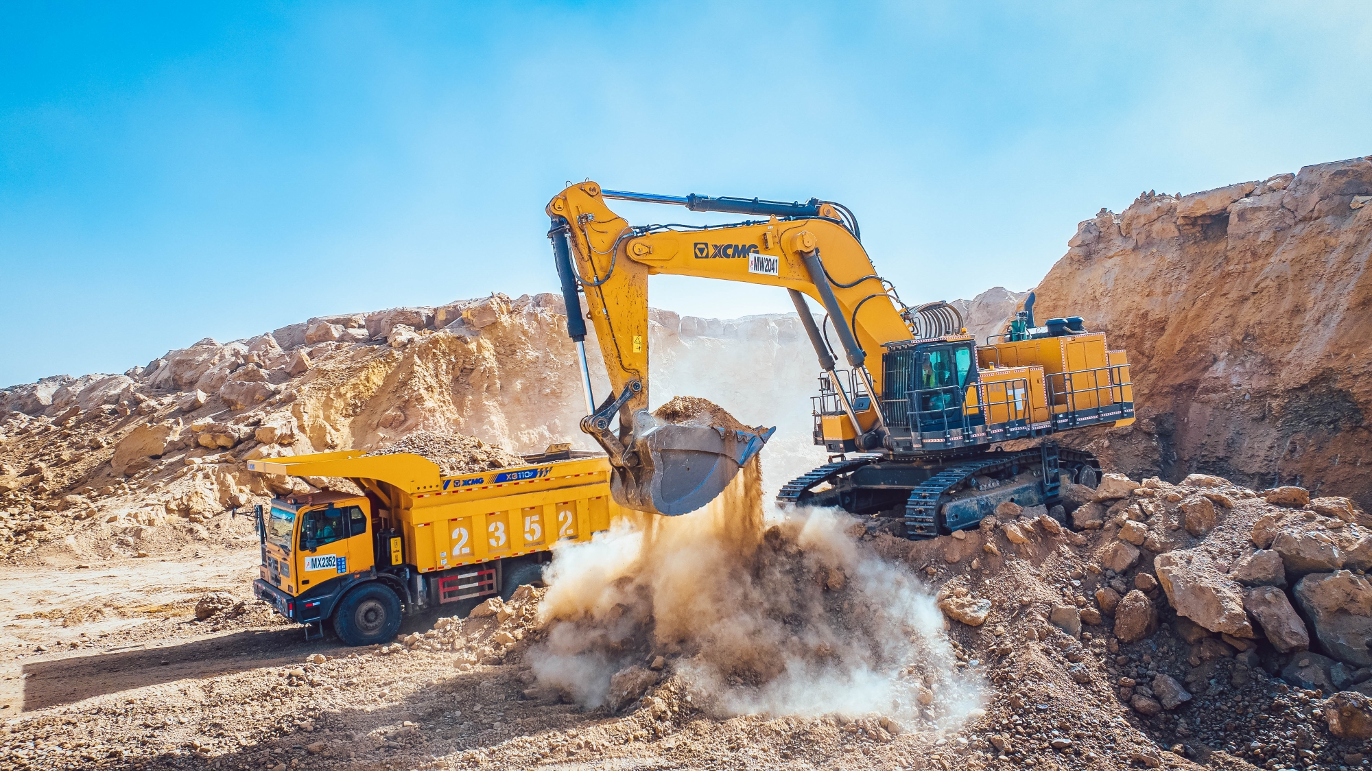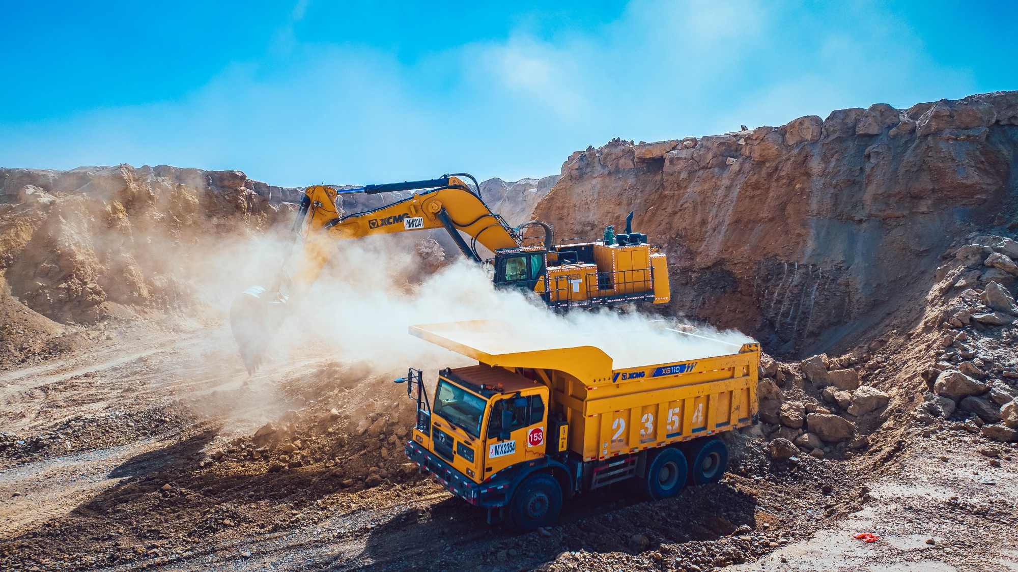 極端工況,實力應(yīng)對。徐工XG110憑借極端工況適用性,在極寒缺氧等惡劣環(huán)境中高效完成采剝?nèi)蝿?wù)。其優(yōu)化型礦山底盤與車架,采用高強度鋼材,關(guān)鍵部位加強設(shè)計,抗沖擊、抗扭變形能力超強,杜絕開裂風(fēng)險。大型工程輪胎、重型礦山車橋以及耐磨損貨箱,賦予它超強承載與抗磨損能力,在極端路況下也能穩(wěn)定運行。