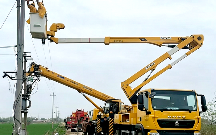 作業(yè)現(xiàn)場,徐工絕緣斗臂車穩(wěn)穩(wěn)伸展臂架,兩名電力工人乘坐絕緣斗升至高空,對鄉(xiāng)鎮(zhèn)配電線路開展帶電檢修作業(yè)。車輛憑借優(yōu)異的絕緣性能與穩(wěn)定操控,實現(xiàn) “停電零感知” 作業(yè),在保障施工人員安全的同時,最大限度減少對群眾生產(chǎn)生活用電的影響。